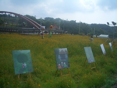 今早在1號倉庫上課,聽說颱風來了,要把吳仲宗的畫和稻草人收起來,下午趕快去拍照存證。今年運氣好沒碰到颱風,所以花開的還不錯。說真的,大太陽底下,很像綠島的天氣「Fucking hot」,還是有很多遊客在捧場。