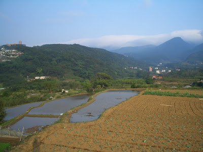 認識三芝的北七公路(大湖路)-(八)「圓山頂」:圓山頂與二坪頂同為台地地形,惟不像二坪頂那麼寬廣,且地勢較低水源充足沒有取水不易的問題,從八連溪源頭笳冬坑,取出來的水量足夠灌溉十幾甲的土地,但是因地勢高氣溫低,稻作只能收成一期,本區自古以來就是以出產茶葉聞名,近年來則因為大約是民國六十七、八年左右建商蓋了一批別墅稱「台北鄉城」,直到十幾年前一些藝術家搬到這裡,形成所謂「圓山藝術村」。